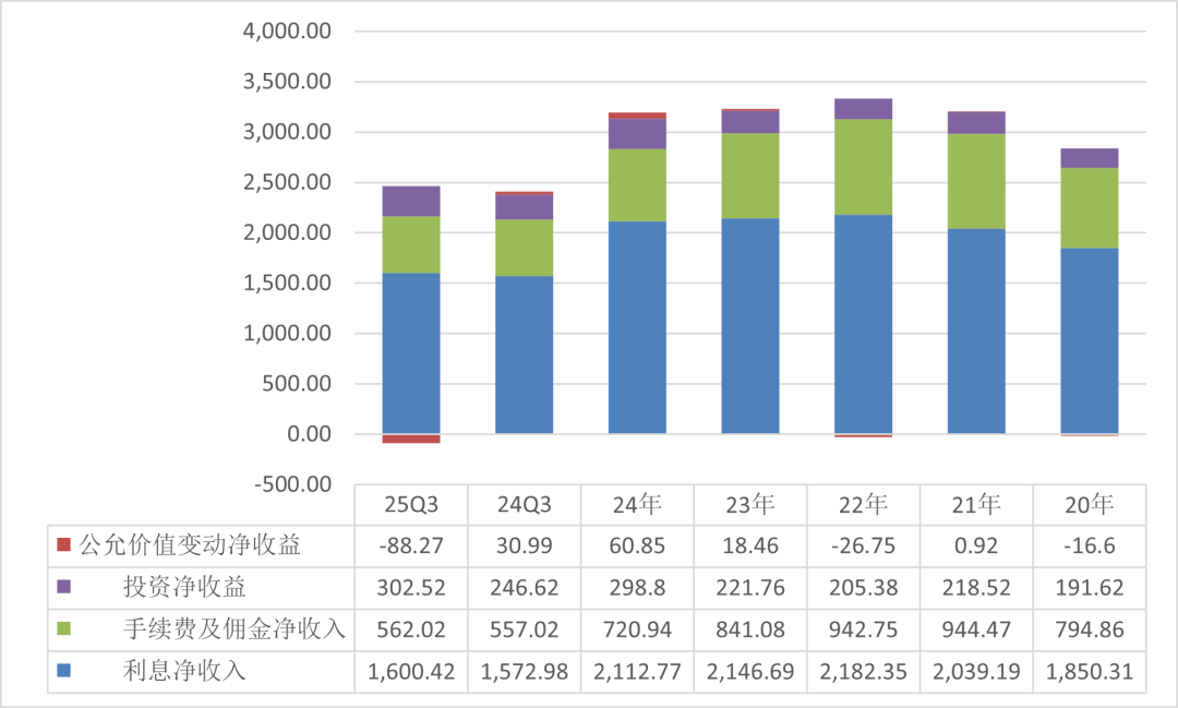 2025年前三季度,投资收益加公允价值变动合计为214.25亿元,较去年同期减少63.36亿元。银行金融资产投资近90%投向债券,其余为股权投资、基金投资、理财产品、贵金属多头等。