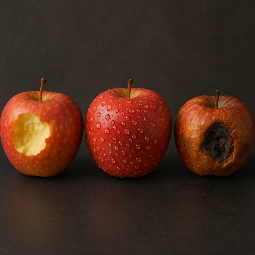 GPT-4o的生成机制本质上基于统计学相关性,它在海量训练数据中检索“苹果+咬痕”的视觉特征,并通过概率分布进行拼贴与融合。它并未真正理解“三个”的数量概念,也未构建“腐烂”的物理模型,仅是根据高维空间中的特征距离进行近似匹配。