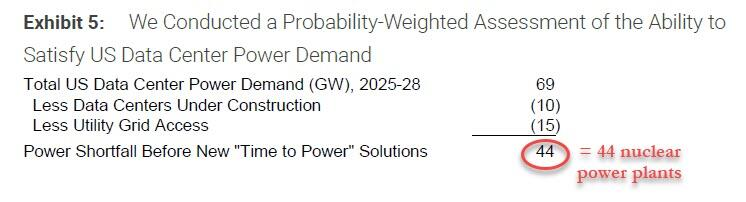 电力供应短缺已成为美国AI产业扩张的最大瓶颈。根据摩根士丹利发布的最新报告,截至2028年,美国数据中心的总电力需求将达到69吉瓦(GW),除去在建中的数据中心和电网可接入的电力,还有44吉瓦的电力缺口,相当于44座核电站。