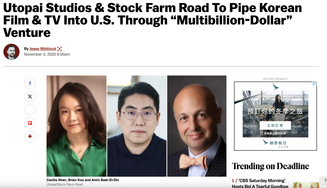从韩国/亚洲内容出海的趋势来看,资本市场也在寻找“下一代文化出口”的新模式模型。以韩国内容为起点,向亚洲(日本、中国、泰国等)以及欧美市场扩展,显然是Utopai East和SFR未来全球化发展的捷径。