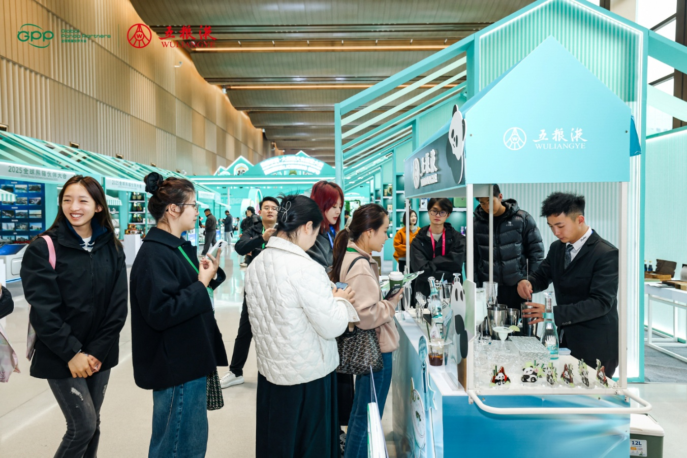 2025全球熊猫伙伴大会期间,配套活动熊猫文创集市同步亮相,集纳熊猫文创、地方特色、科技创新等展品。在熊猫文创集市中心位置的五粮液特装展区上,五粮液·金熊猫纪念酒、五粮液·陶瓷熊猫酒、五粮液·和美四川等含有大熊猫元素的特色产品吸人眼球,新品29°五粮液·一见倾心特调,与“喜番柠”“怦然心动”等鸡尾酒创意十足,吸引现场嘉宾纷纷驻足品鉴。