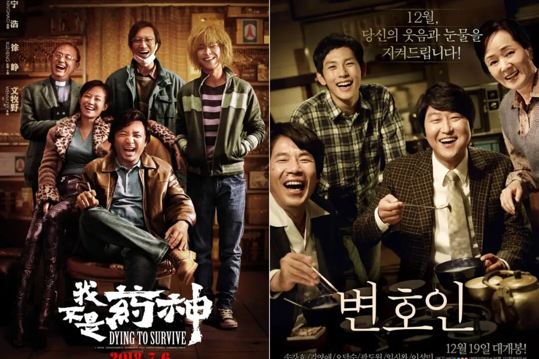 2018年中国电影《我不是药神》海报(左)2013年韩国电影《辩护人》海报(右)