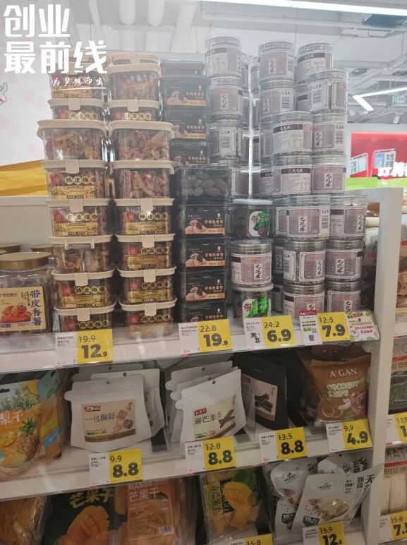 「创业最前线」走访北京和河北的多家折扣店、盒马、精品便利店也发现,一些渠道为了差异化并未上架溜溜梅的传统产品梅干以及西梅产品,反而在显眼位置上新了海外品牌和自有品牌。