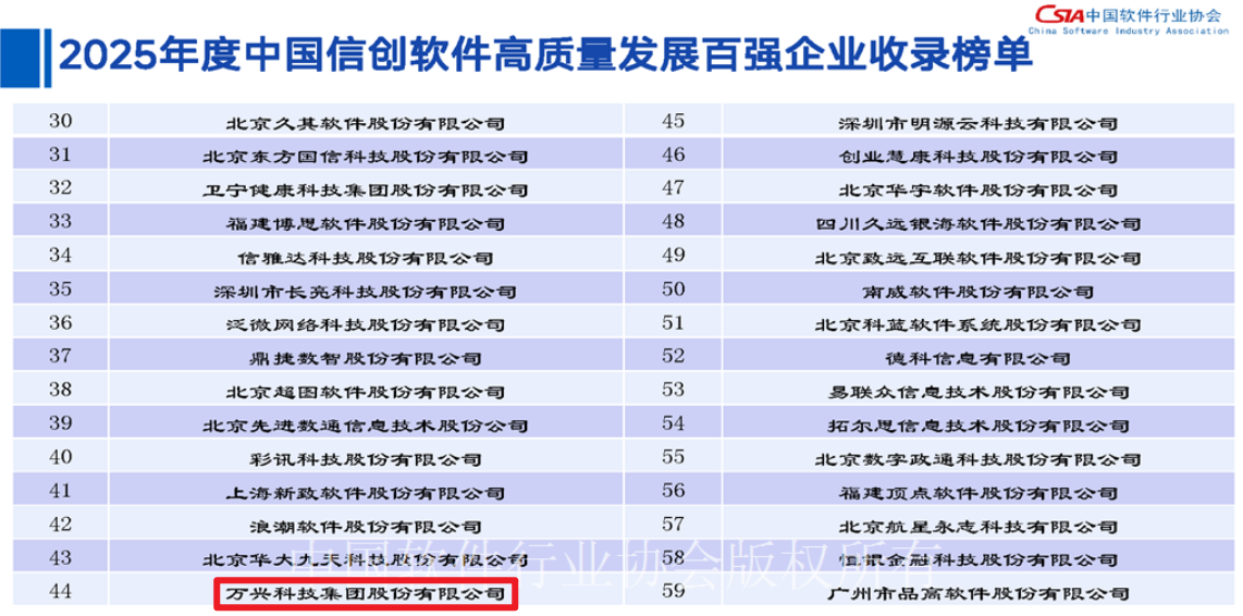 万兴科技荣登“2025年度中国信创软件高质量发展百强企业”榜单