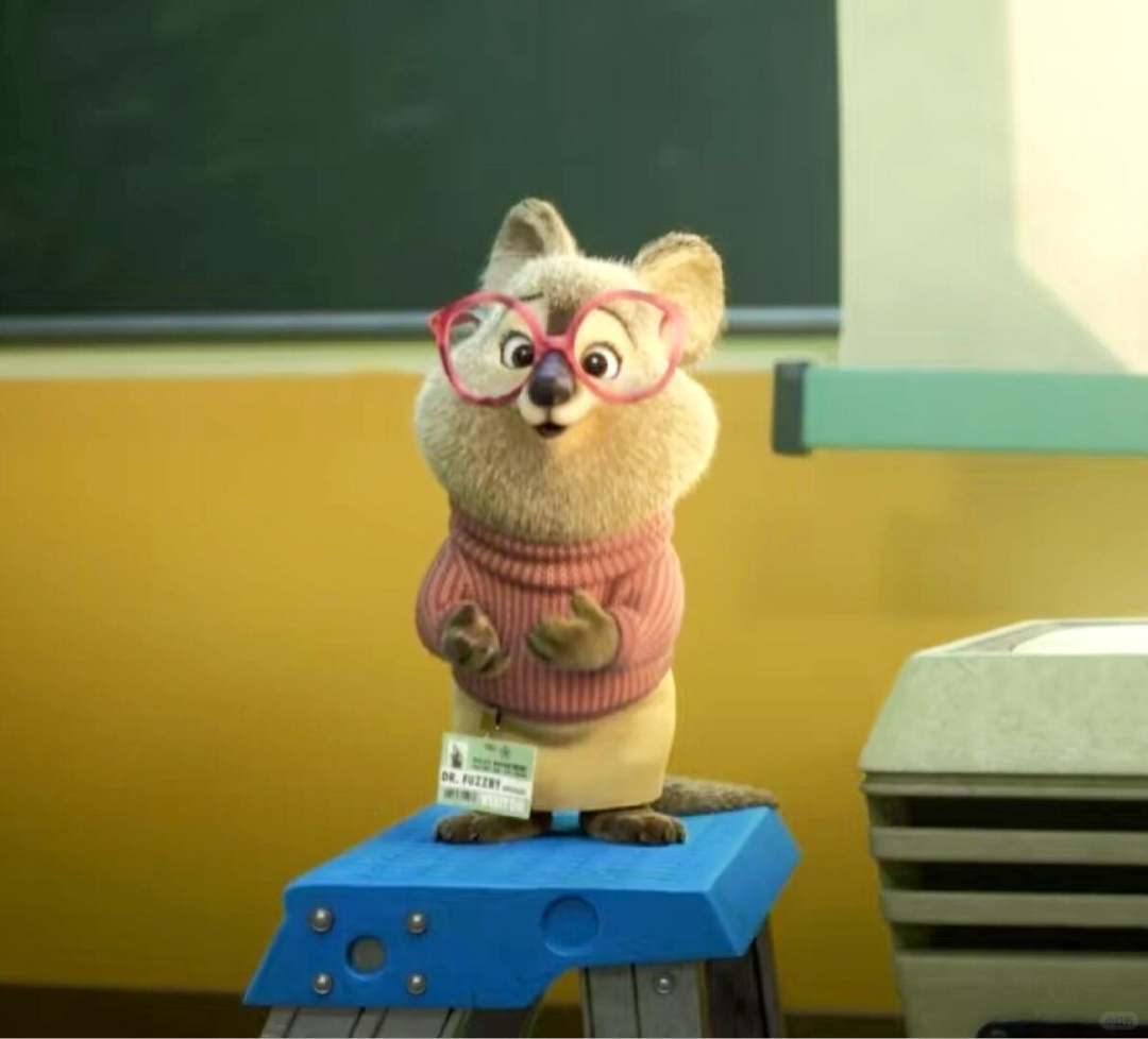 而在人物的塑造上,群像的塑造依然令人「会心一笑」,让人惊讶于迪士尼如何能够在人格化的过程中保留并放大每个动物的特质,并转化为一种独一无二的萌点或笑点,比如心理委员毛毛原型是短尾矮袋鼠,现实中有个外号就是微笑天使。这种治愈、欢乐的基色依然铺垫在整个电影过程中,使其不失合家欢的特质。