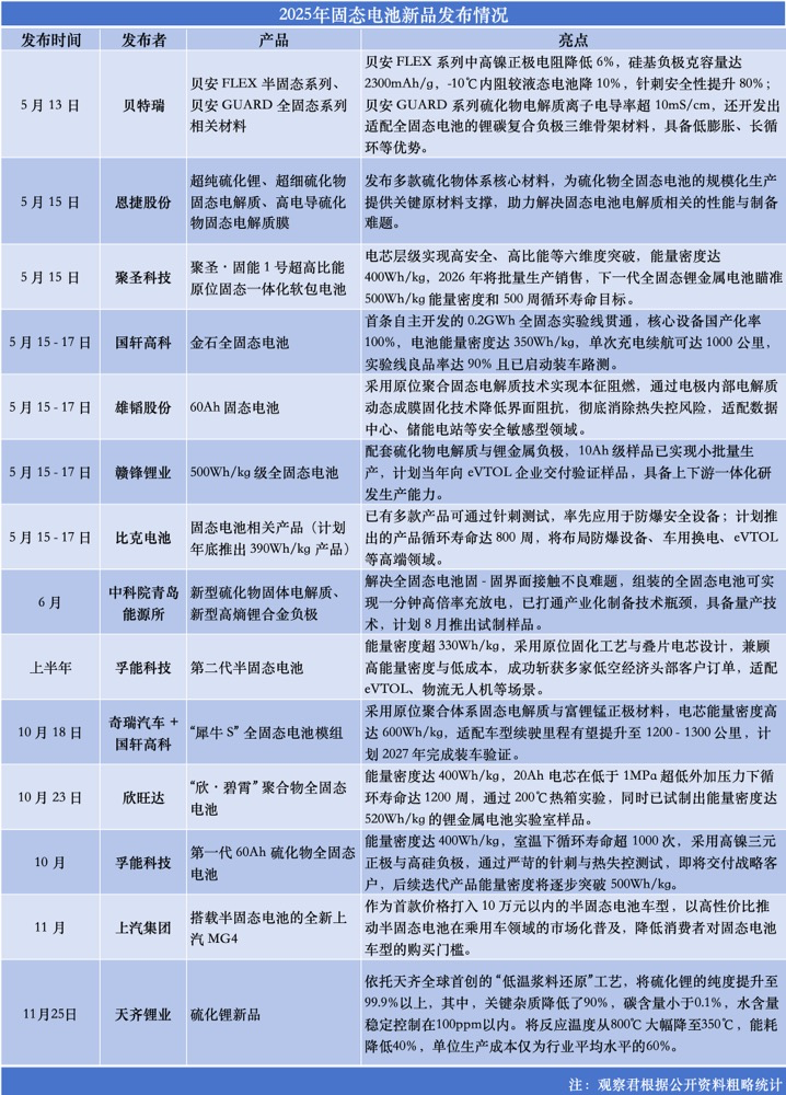 当然,术语、分类、技术的厘清只是我国率先卡位标准制定权之举,亦只是为产业链赢得战略主动的一个缩影。去年以来,支持固态电池技术之政策更为密集的落地,工信部等部委设立60亿元全固态电池研发专项基金后,今年的《电子信息制造业2025-2026年稳增长行动方案》《新型储能制造业高质量发展行动方案》等文件中均明确提及要加快固态电池的发展。![]()