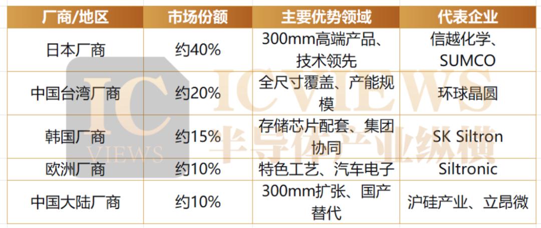 市场的复苏并未带来普天同庆的繁荣,而是像一面棱镜,将不同技术路线、不同应用前景的产品与公司清晰地分隔开来。具体来看,不同尺英寸和应用的硅片表现迥异。全球主要硅片厂商市场份额对比表清晰地反映了这一现状: