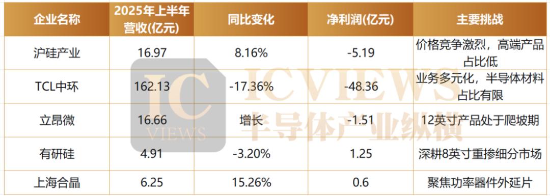 国内主要硅片企业2025年上半年业绩对比表展示了这一现象:
