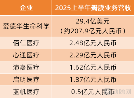 详细来看,2025上半年,“全球瓣膜之王”爱德华生命科学(Edwards Lifesciences,简称:爱德华)营收为29.4亿美元(约207.9亿元人民币)。而国内企业在瓣膜市场上营收最高的是佰仁医疗,约为2.48亿元人民币。与此相比,爱德华的营收规模是佰仁医疗营收的83倍之多。