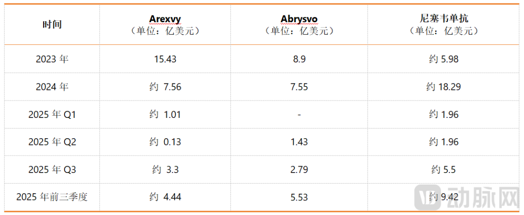 另一方面,曾经的RSV明星疫苗凭借婴幼儿适应症弯道超车。2023年5月,GSK开发的Arexvy和辉瑞开发的Abrysvo前后脚在美国获批上市,曾轰动一时。作为全球仅有的两款针对RSV的老年人群疫苗,Arexvy和Abrysvo填补了多年的临床空缺。