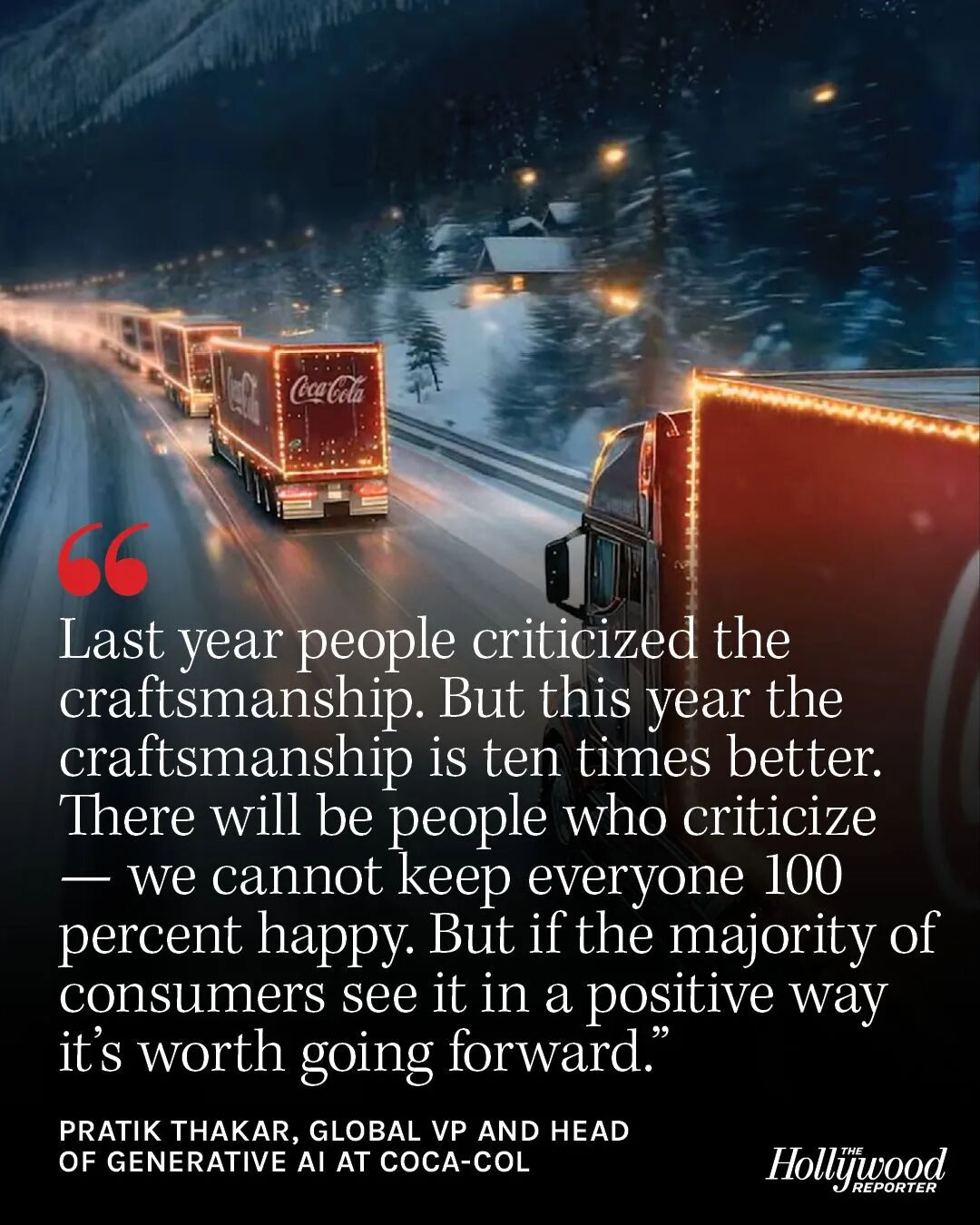 另一方面,业界质疑AI广告“降低成本”的效果。因为根据《华尔街日报》报道,本次假日营销活动共有约 100 人参与,涵盖可口可乐公司、其广告代理公司 WPP 以及人工智能创意工作室 Silverside 和 Secret Level。这个人数与以往不使用人工智能的广告制作规模相当。