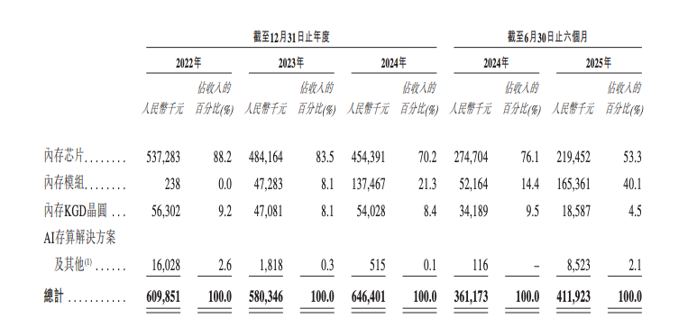 根据招股书,2022年到2024年,内存模组毛利率分别为5.9%、11.1%、8.7%。2025年上半年,内存模组毛利率3.9%,同比减少1.6个百分点。