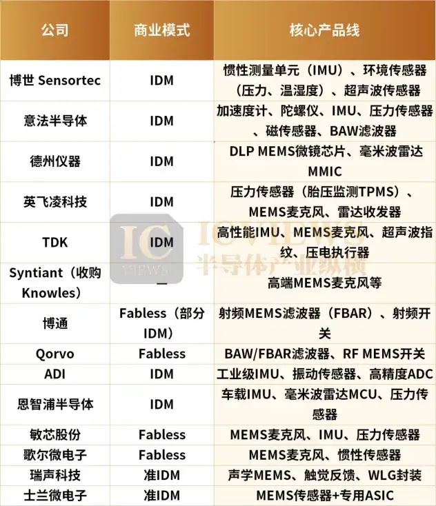 高端市场仍被博世、意法半导体、德州仪器等国际巨头垄断。中国MEMS 产业目前仍处于 “量增价低” 的阶段,在汽车级、工业级等高附加值领域的话语权较弱。