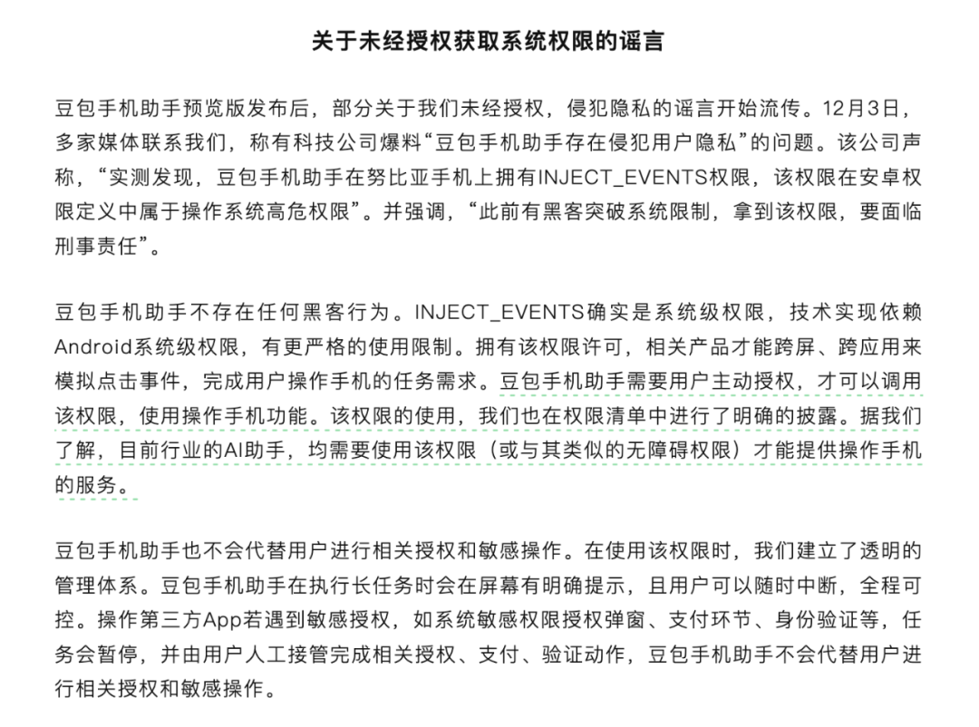 豆包手机助手声明