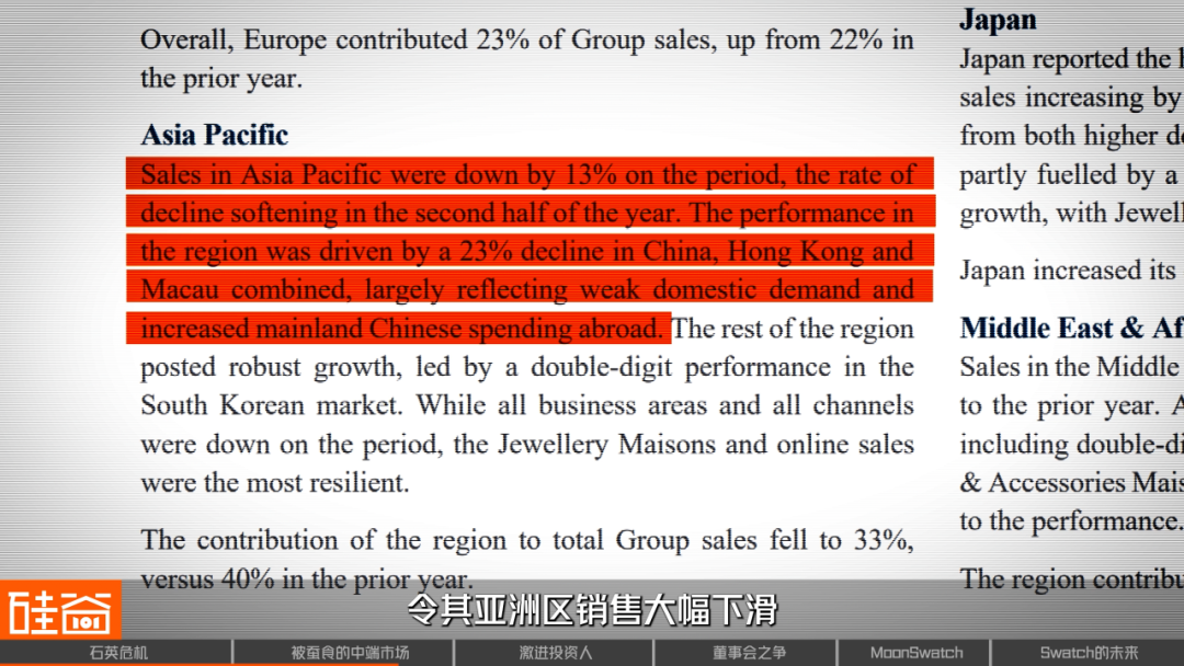 在财报中,Swatch集团将这一下滑完全归因于中国市场表现不佳。2024年全年,中国市场销售额环比下滑约30%。到了2025年,这一趋势仍在愈演愈烈:今年上半年,Swatch的批发业务下跌30%,零售业务也下滑15%。Baader Helvea的分析师提到:Swatch对中国市场的依赖严重影响了其股票表现。