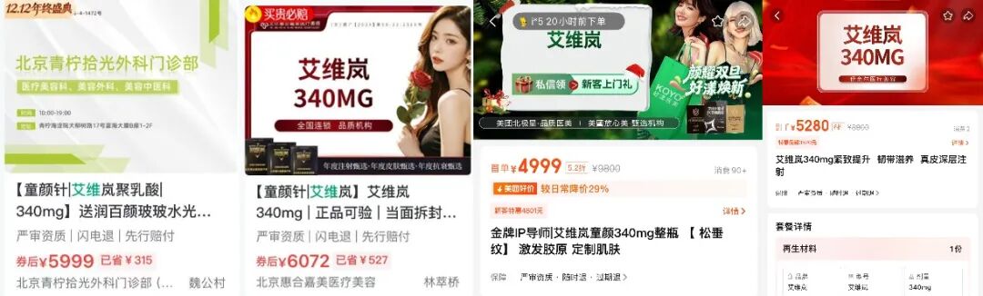 然而2024年初以来,随着童颜针的大量获批,减配、低价的童颜水光产品,也开始大量涌现。