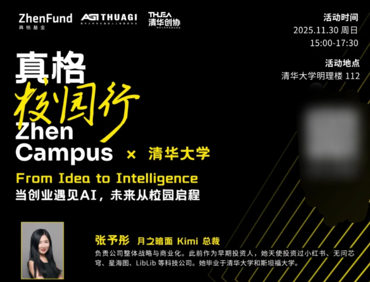 12月8日,据多家媒体消息,在11月末真格基金和清华创协举办的线下活动上,月之暗面联合创始人张予彤以月之暗面Kimi总裁的身份亮相。据介绍,张予彤负责月之暗面的整体战略与商业化。