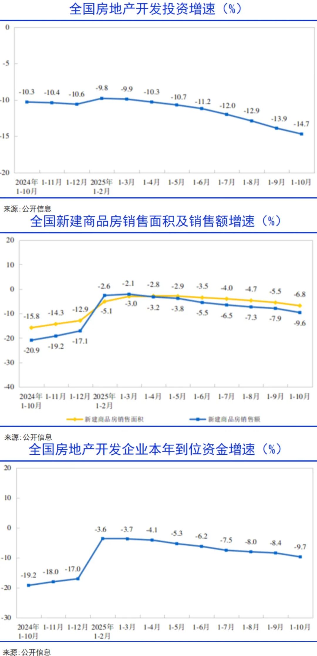 今年前10个月,全国房地产开发投资73563亿元,同比下降14.7%;开发施工面积和交付面积也分别减少9.4%和6.8%。