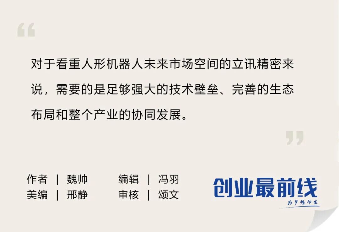 而对于看重人形机器人未来市场空间的立讯精密来说,需要的是足够强大的技术壁垒、完善的生态布局和整个产业的协同发展。
