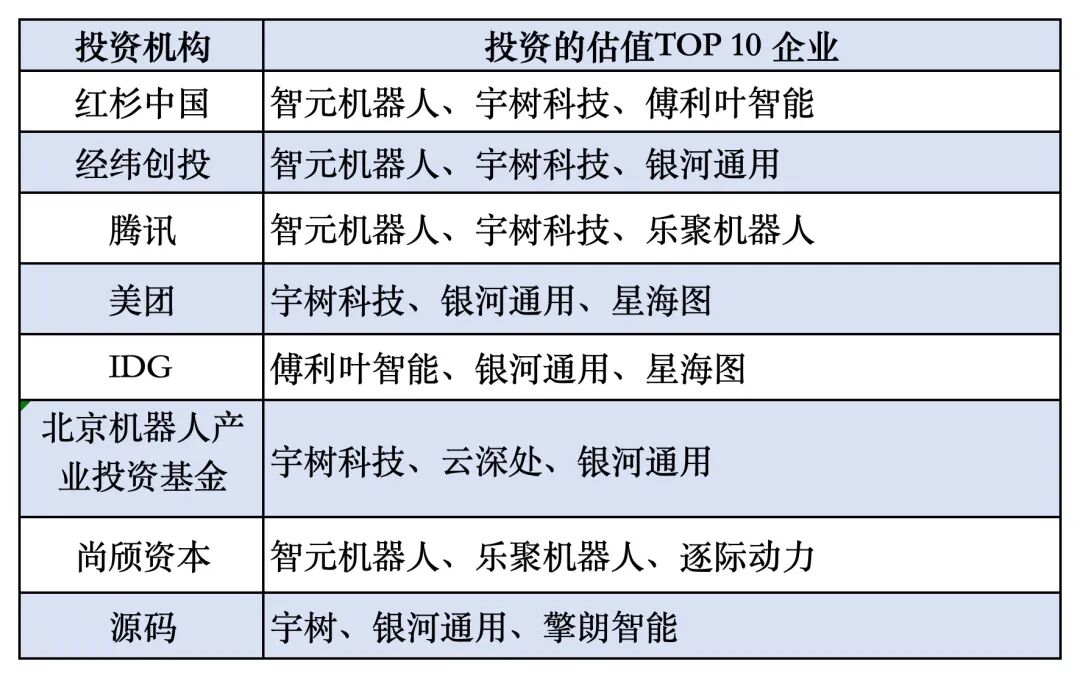 部分投资机构通过系统性布局,实现了对赛道头部企业的“重仓式”覆盖。红杉中国、经纬创投、腾讯、美团、IDG、北京机器人产业投资基金、尚颀资本、源码均同时命中3家TOP 10企业,展现了布局眼光。