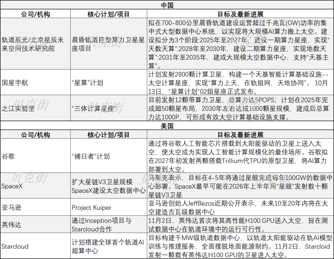 除导航通讯类星座计划外,伴随近年来人工智能行业飞速发展,算力需求呈几何倍数增长,多家公司计划将算力送进太空,包括但不限于国内公司/机构“北京星辰未来空间技术研究院”“国星宇航”“之江实验室”;美国谷歌、Space X等熟知的科技公司。