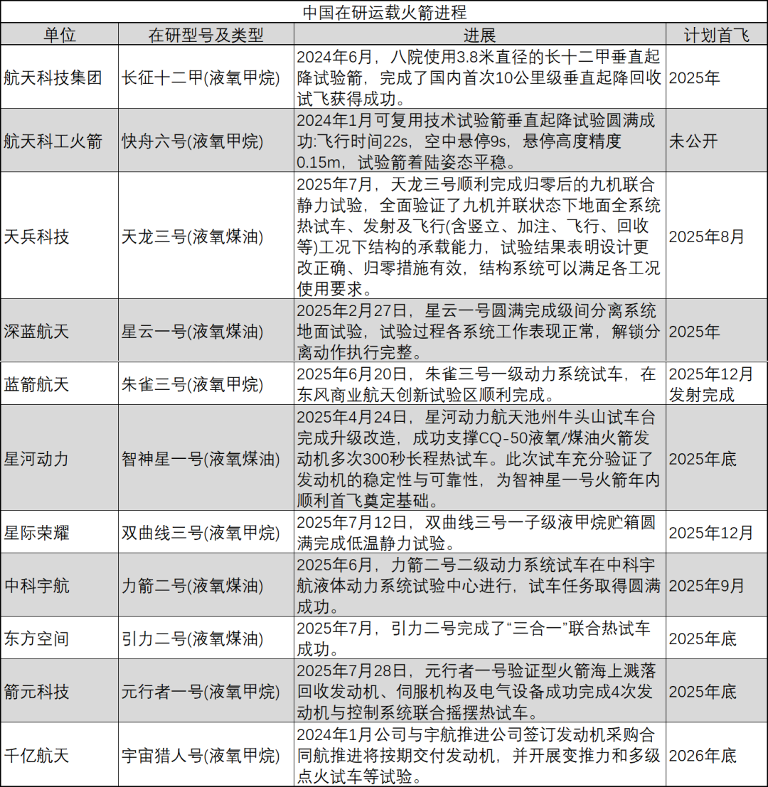我国可回收火箭,除12月初回收失败的“朱雀三号”外,还有航天系旗下的长征十二甲、快舟六号等国家队箭型,天龙三号、引力二号、双曲线三号、智神星一号等民企研制的可回收箭型,大部分箭型计划于2025年底首飞。