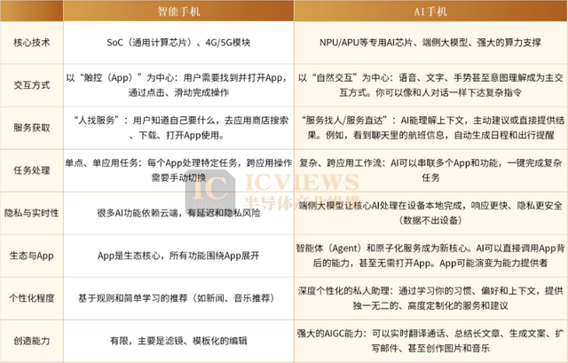 如今市场上AI手机的宣传层出不穷,但真正的AI手机与传统智能手机有着本质区别。AI手机并非脱离智能手机范畴的全新产品,而是其下一代进化形态,核心差异在于AI从“辅助工具”升级为“系统级的基础能力和交互核心”。不过,关于AI手机的准确定义,目前行业尚未形成统一标准。