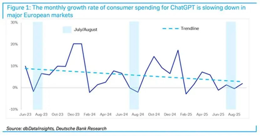 其核心产品ChatGPT Plus的订阅收入虽然可观,但已显现出明显的增长瓶颈。德意志银行于10月14日发布研报称,OpenAI在欧洲主要市场的订阅收入已连续四个月持平。而随着谷歌将性能更强的Gemini模型深度集成,ChatGPT Plus的“付费价值”被进一步稀释,更加剧了其用户增长和留存的压力。