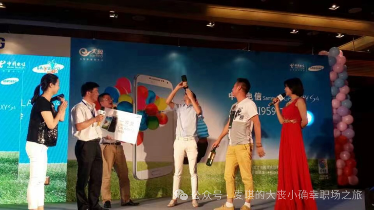 比如,新人先喊:“NOTE III上市,我们华东支社的目标是日销一万台!”接着,大家一起高喊:“必达,必达,必达!耶——”喊完后,所有人一饮而尽杯中酒。这看起来似乎不难,难就难在所有人都要依次喊口号。轮到最后一个人时,很可能找不到合适的话题,或者不小心重复了前面喊过的,那就要接受罚酒,直到喊出一个完整无误的口号为止。 大团队聚餐,还会要求你上台面对全场喊口号,一旦紧张喊错或者喊得含糊不清,同样要罚酒。这是每次聚餐的必备节目,后来连渠道客户、合作伙伴们都学会了,于是此起彼伏的口号声、呐喊声响彻餐厅内外,震耳欲聋。
