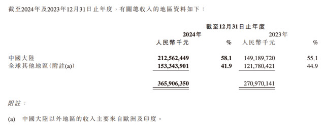小米集团近六成收入来自中国大陆 来源 / 小米集团2024年财报