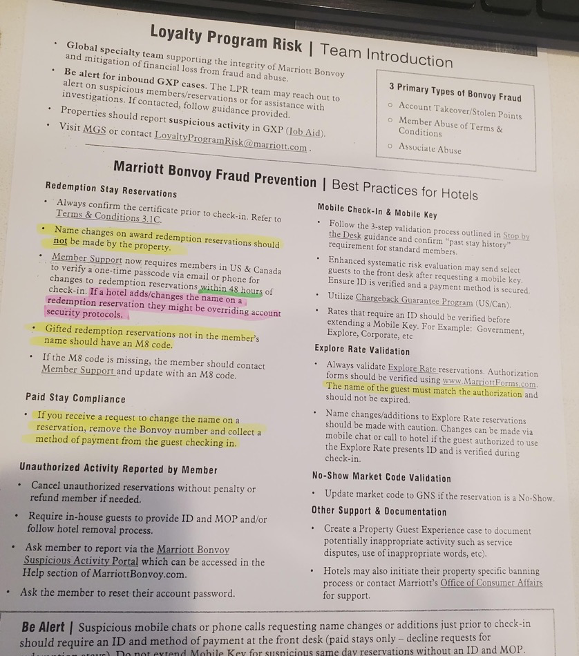 据Reddit披露的一份疑似万豪内部文件中指出: