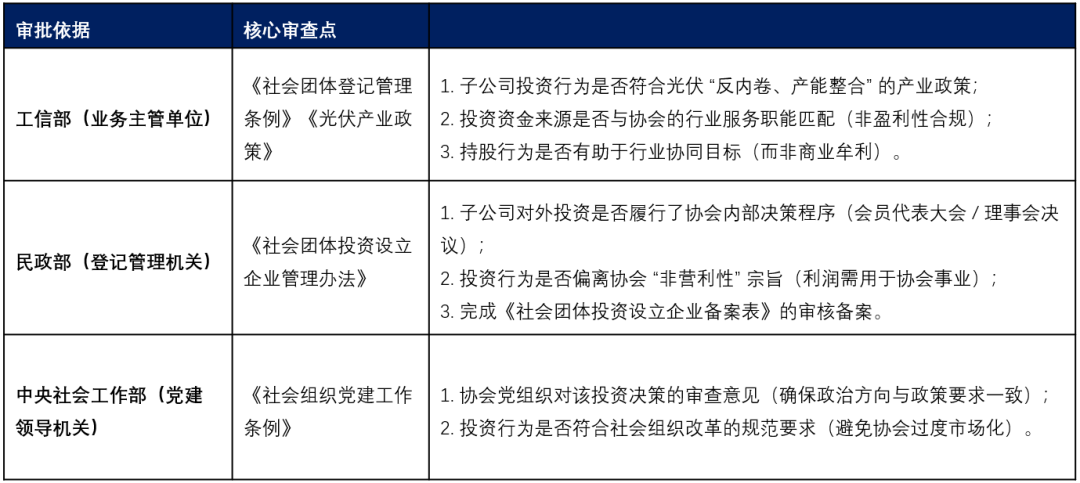 第一是协会内部要走完程序。要经过光伏协会的理事会/常务理事会等形成决议。涉及重大对外投资、设立/控制企业、股权出资安排,需依协会章程走完内部治理程序,否则在后续审计、年检、问责上都过不了关。