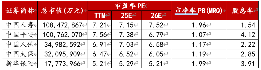 图:A股上市保险公司估值情况