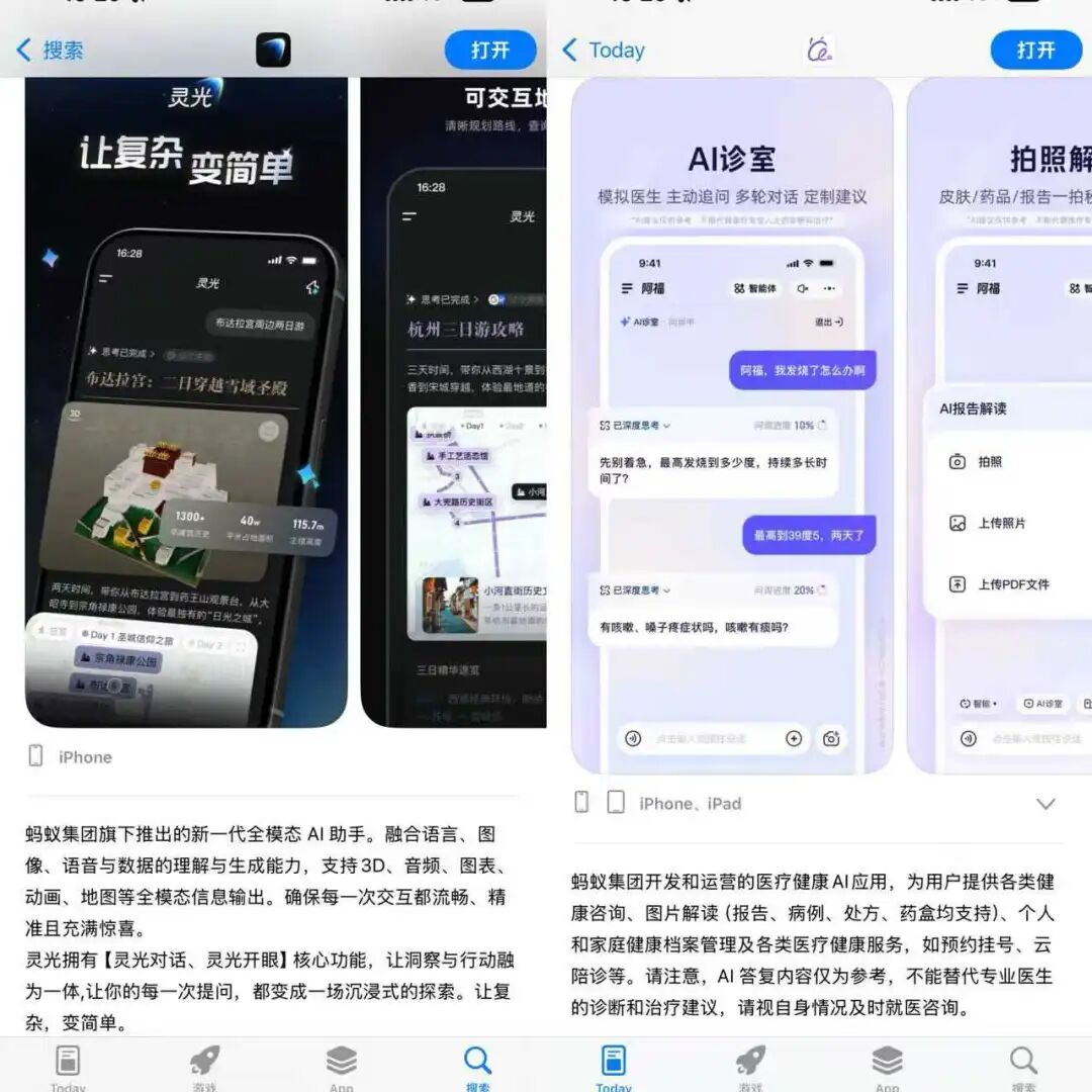 图:“灵光”和“阿福”在应用商店的介绍