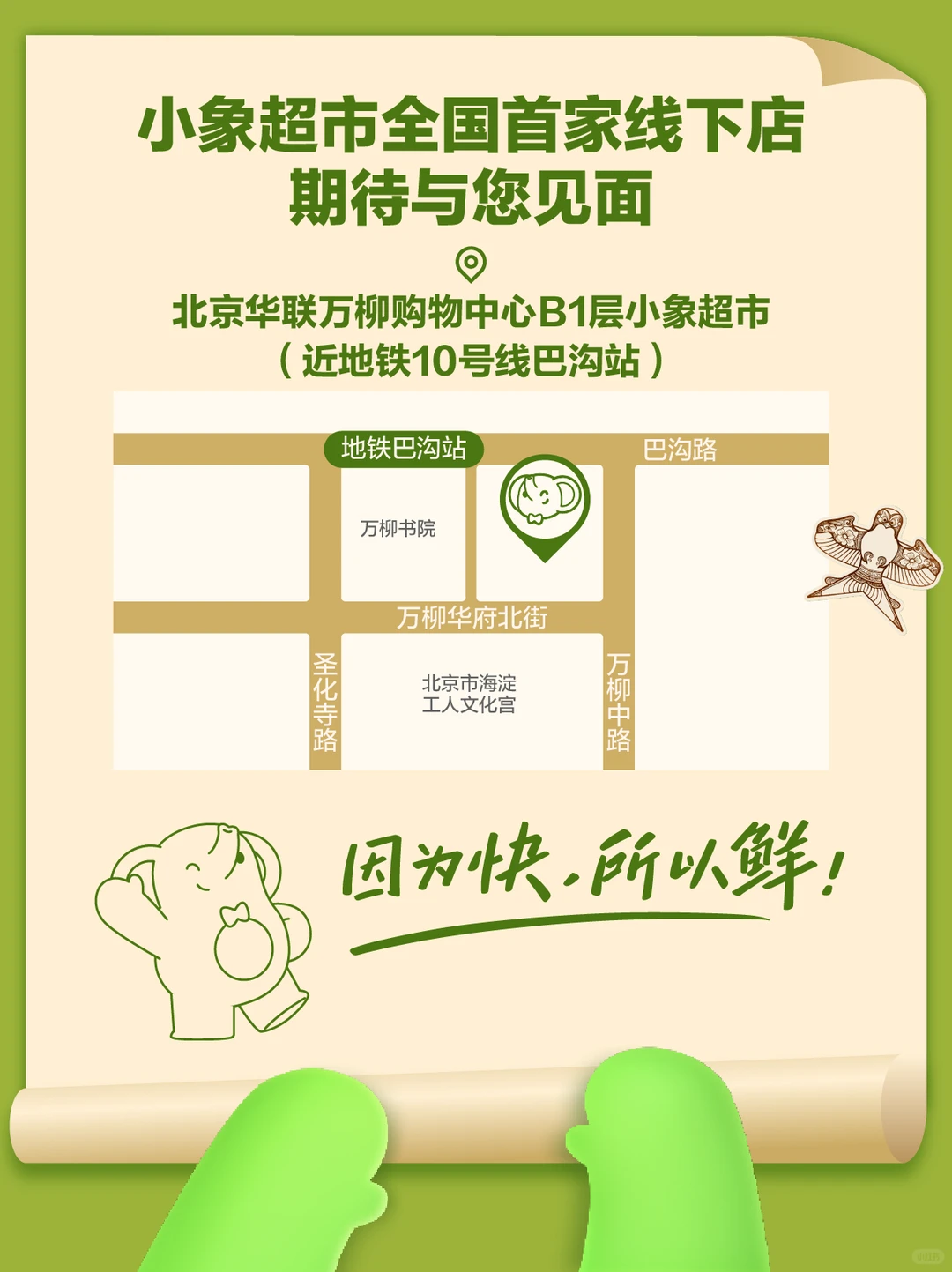 首家小象超市的线下门店,选址在北京海淀区华联万柳购物中心 B1 层,将于12月19日正式开业。这一地址此前是BHG精品超市,于去年年底闭店,面积近6000平米。