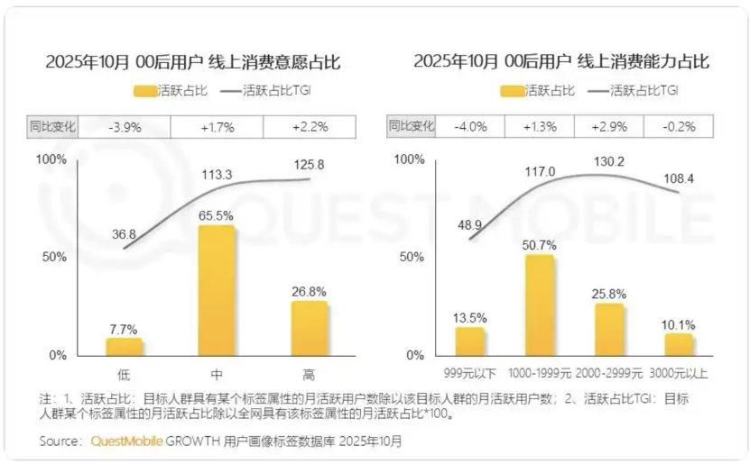 以10月的数据为例,中高消费意愿的00后占比接近95%,展现出稳定的消费意愿与强劲的消费能力。