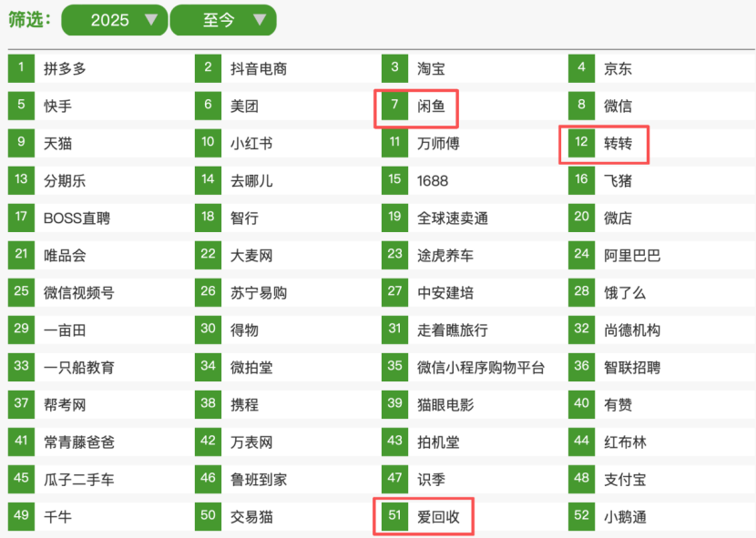 第三方数据机构艾瑞《2025中国闲置交易白皮书》显示,2025上半财年二手电商GMV已破1.95万亿元,而2024全年拼多多GMV不过1.1万亿。