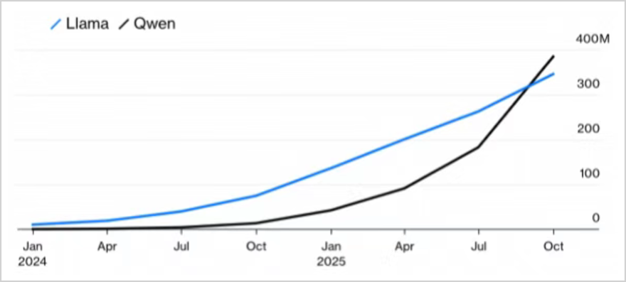 目前,Qwen系列已开源超过300款模型,覆盖文本、代码、图像、语音、视频全模态,在全球主要模型社区的累计下载量已突破6亿次。硅谷乃至全球的大量初创公司,都在基于Qwen开发本地化的AI应用。