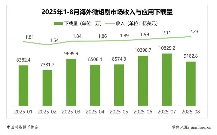 《中国微短剧行业发展白皮书(2025)》数据显示,2025年1月至8月,海外微短剧市场总收入达15.25亿美元,同比激增194.9%。海外微短剧应用总下载量7.3亿次,同比增长370.4%。ReelShort、DramaBox两大头部平台单季收入均破1亿美元,昆仑万维DramaWave年化流水破2.4亿美元。收入前20位的应用中,90%具有中国背景,创造了91%的市场收入。