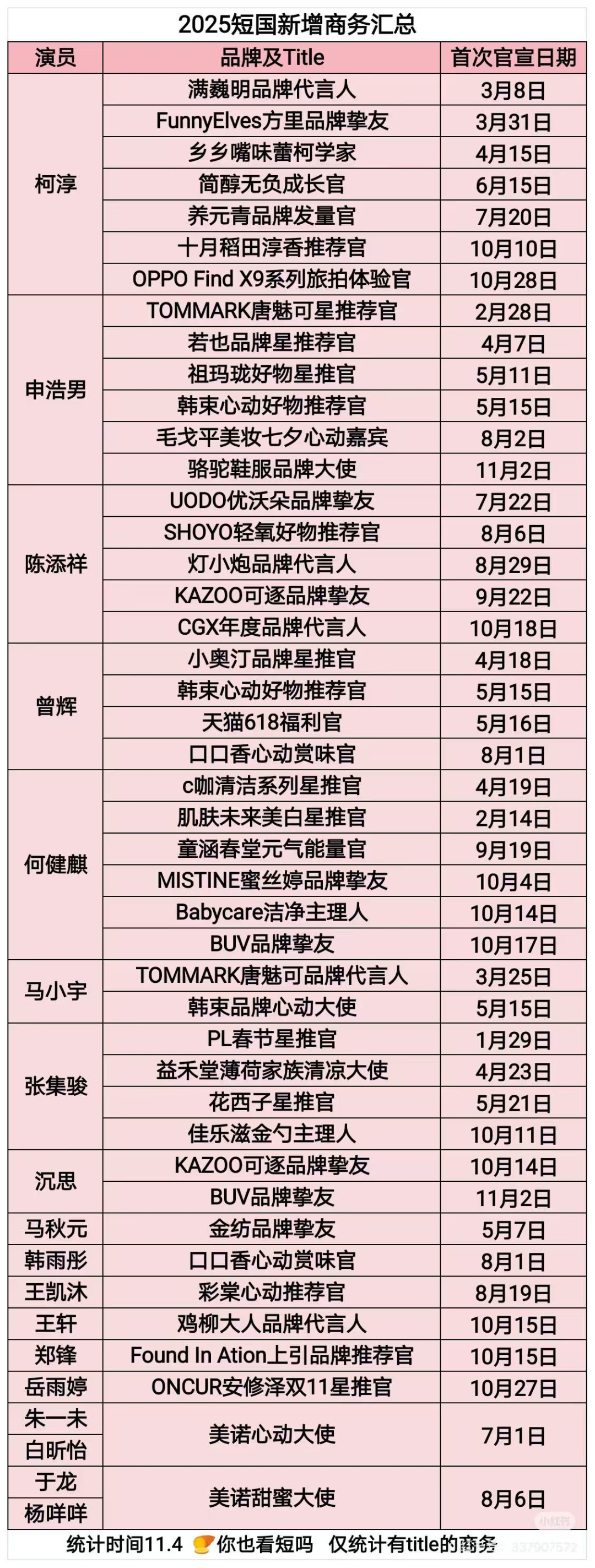 直观体现带货能力的是,短剧知名演员的时尚大刊,品牌商务合作也有了直线提升。由于女性粉丝粘性更强、消费力更高,男演员通常商务表现更好。如柯淳《费加罗》杂志最终总销量为18000+本,销售额达到断层的90w元。唯品会为刘萧旭剧中角色“周晟安”定制双11广告视频,近期还接下阿维塔汽车广告,12月还有餐饮品牌塔斯汀和美妆品牌毛戈平的合作。