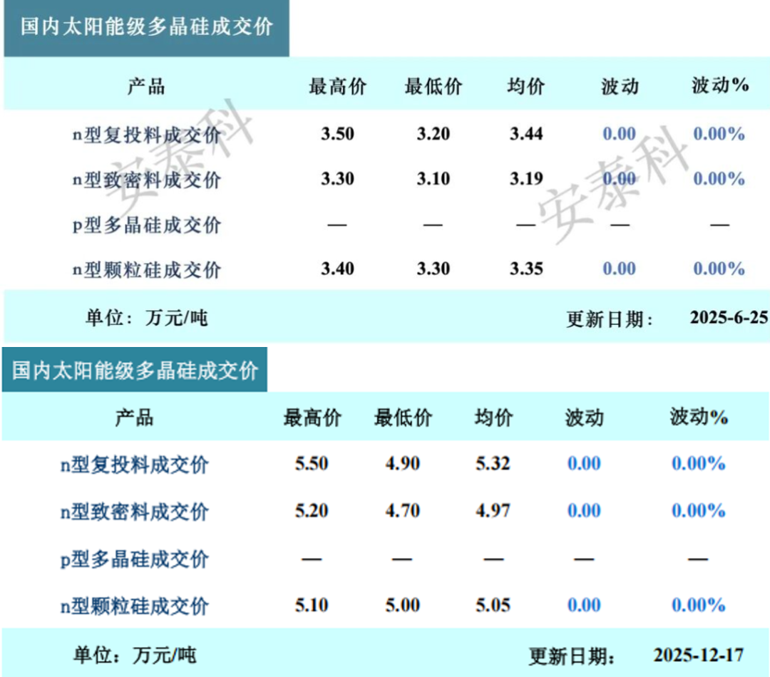 表现在现货方面,同样成绩斐然——6月25日n型复投料为3.44万元/吨,12月月17日为5.32万元/吨,涨幅为54.65%。