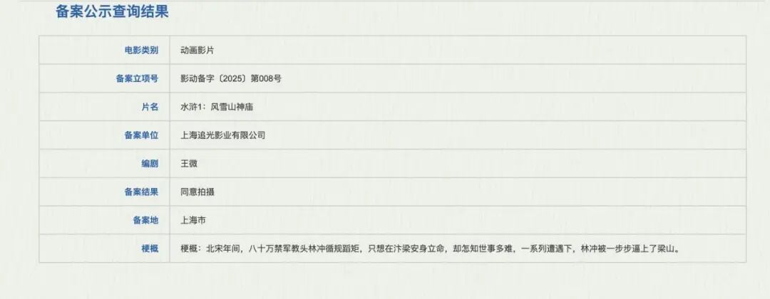 《水浒传》相对于《三国演义》的改编优势也是从这些底层人物身上获得的。卡卡表示,《水浒传》中“逼上梁山”的概念每一个中国人都很熟悉,任何一个时代都或许有类似气质的故事存在。在这种情况下,《水浒传》的人物极易被扩写,成为一个单独的IP宇宙。追光传媒去年立项的《水浒1:风雪山神庙》或许就带有类似的创作逻辑。