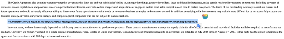 12月1号,在iRobot官网发布的一份递交给美国证券交易委员会的文件中直言,“公司主要依赖Picea(杉川)作为我们唯一的合同制造商,我们的业务和经营业绩在很大程度上取决于该制造商能否继续生产。”直接表明企业的发展经营严重依赖于杉川的代工。