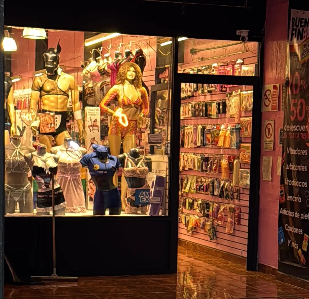 墨西哥人对生活的热爱,还有一点可以看出来,就是满大街情趣用品店。不管是墨城唐人街,还是在独立纪念柱的市中心,到处都可以看见情趣用品店,Zona Rosa、Centro Histórico等区域聚集了很多娱乐、餐饮、夜店,这些地方的情趣用品店会更多。这些店门头很大,灯光明亮,商品琳琅满目,而不是灰暗灯光的小门脸。