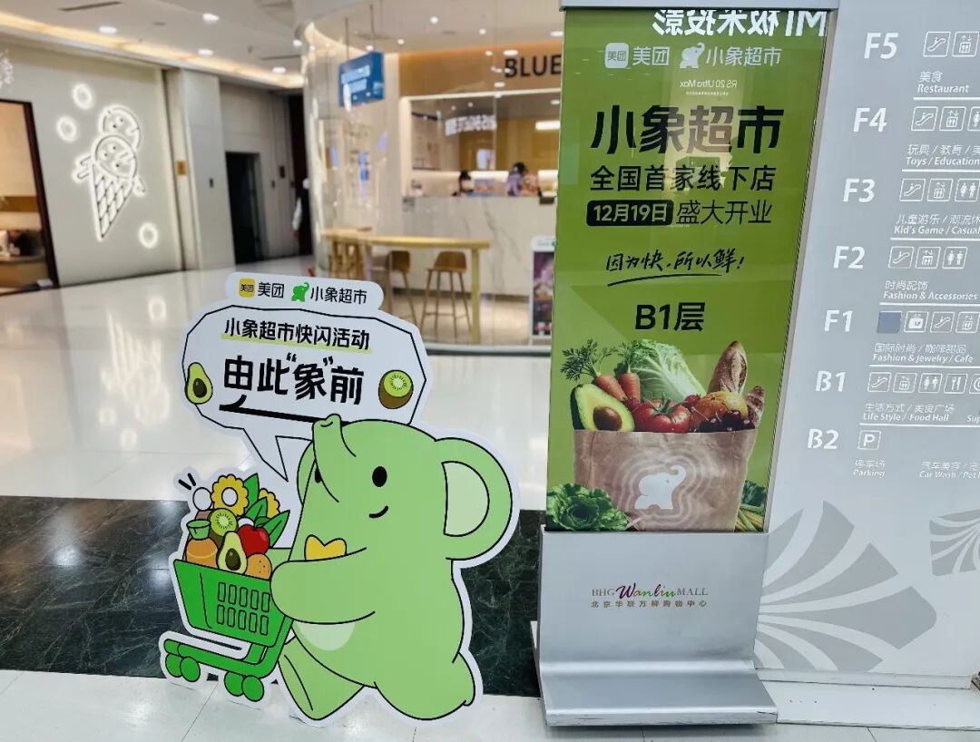 2019年,美团从上线即时零售的美团买菜起步,做800平米以上更丰富品类的前置仓,后更名小象超市。