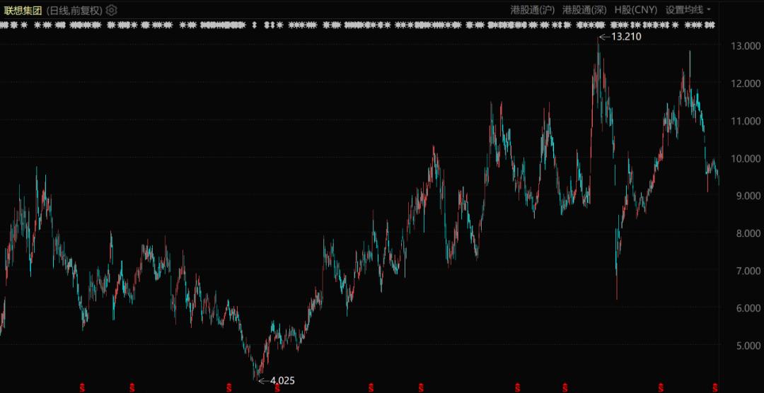 比起这些被投AI硬件在二级市场上的风光无限,联想自身的股价表现就要平淡的多。从2023年就开始讲的AI PC故事,虽然可以支撑股价反弹,但也只能支撑住规模有限的温和反弹。