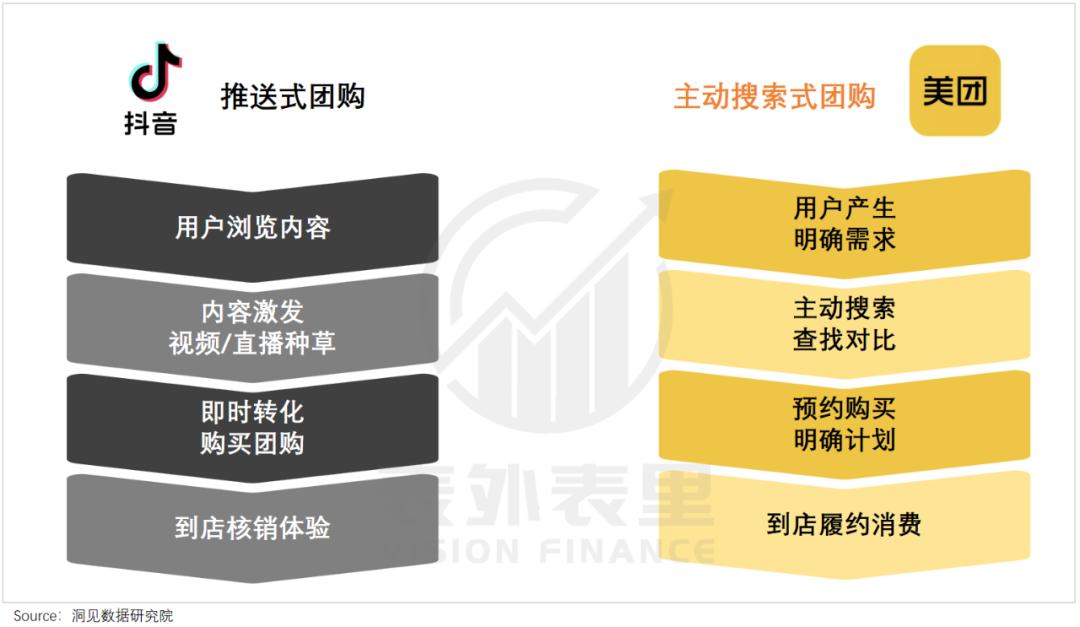 在其激战外卖期间,抖音发力到店业务,摆脱了“种草10个用户只有1个人下单”的尴尬,实现了“超50%生活服务GMV来自用户搜索下单”的飞跃。①