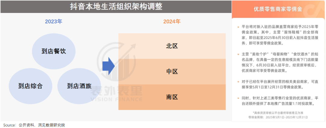意识到这点的抖音,从2024年开始“变阵”。原本以品类划分的本地生活部门,按地域重整,尽可能吸纳台球、游泳馆等更多泛行业商家入驻;同时,对服饰、美妆、医美等能实现“内容即转化”的品类(线下团购),给予免佣金等扶持。