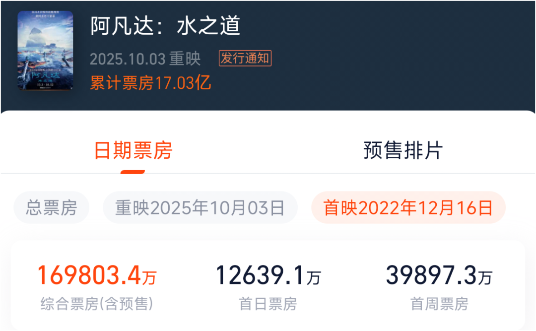 《阿凡达:水之道》票房(图源:灯塔专业版)