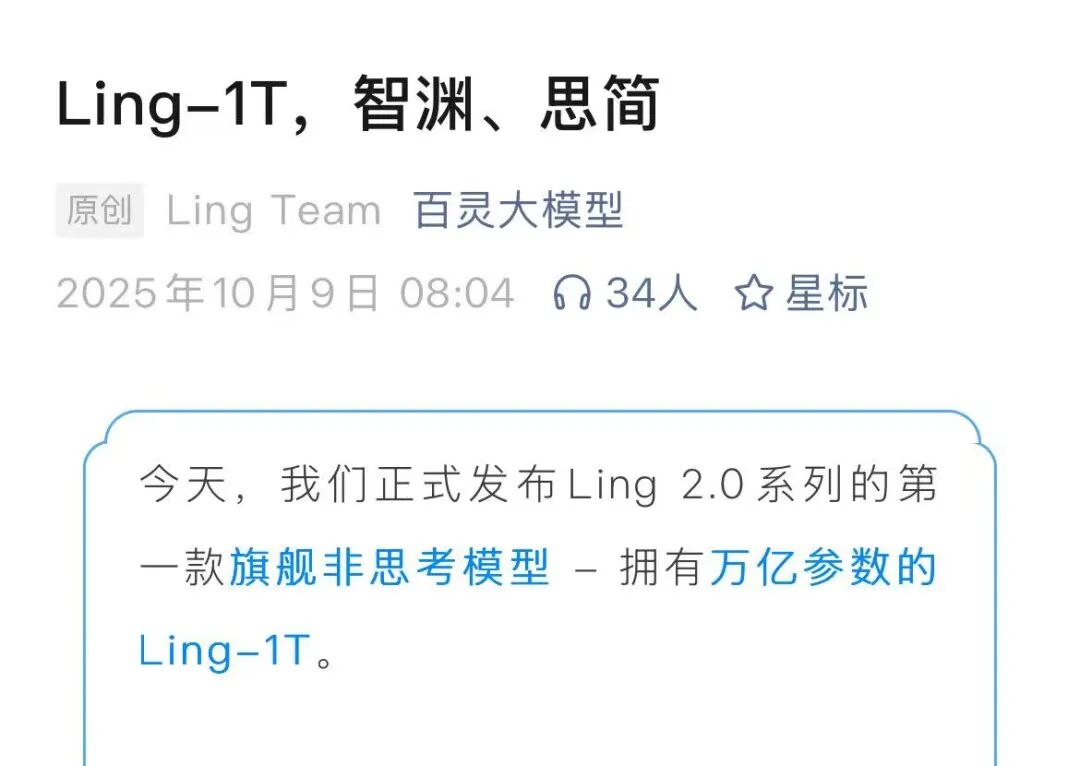 蚂蚁发布万亿大模型Ling-1T,图/百灵大模型官方微信公众号